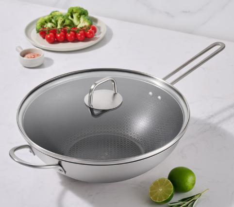钛陶瓷覆面蜂窝炒锅,通过先进的钛陶瓷覆面技术与蜂窝结构设计,实现了健康不粘的烹饪体验。真有钛,更健康,不含PFOA等有害物质,让消费者无需担忧烹饪中的安全问题,尽享安心便捷的料理时光。这款炒锅兼具健康安全与实用功能,通过蜂窝结构增强了产品的耐用性和不粘性能,同时具有卓越的耐磨性和耐腐蚀性,使用寿命远超传统涂层。